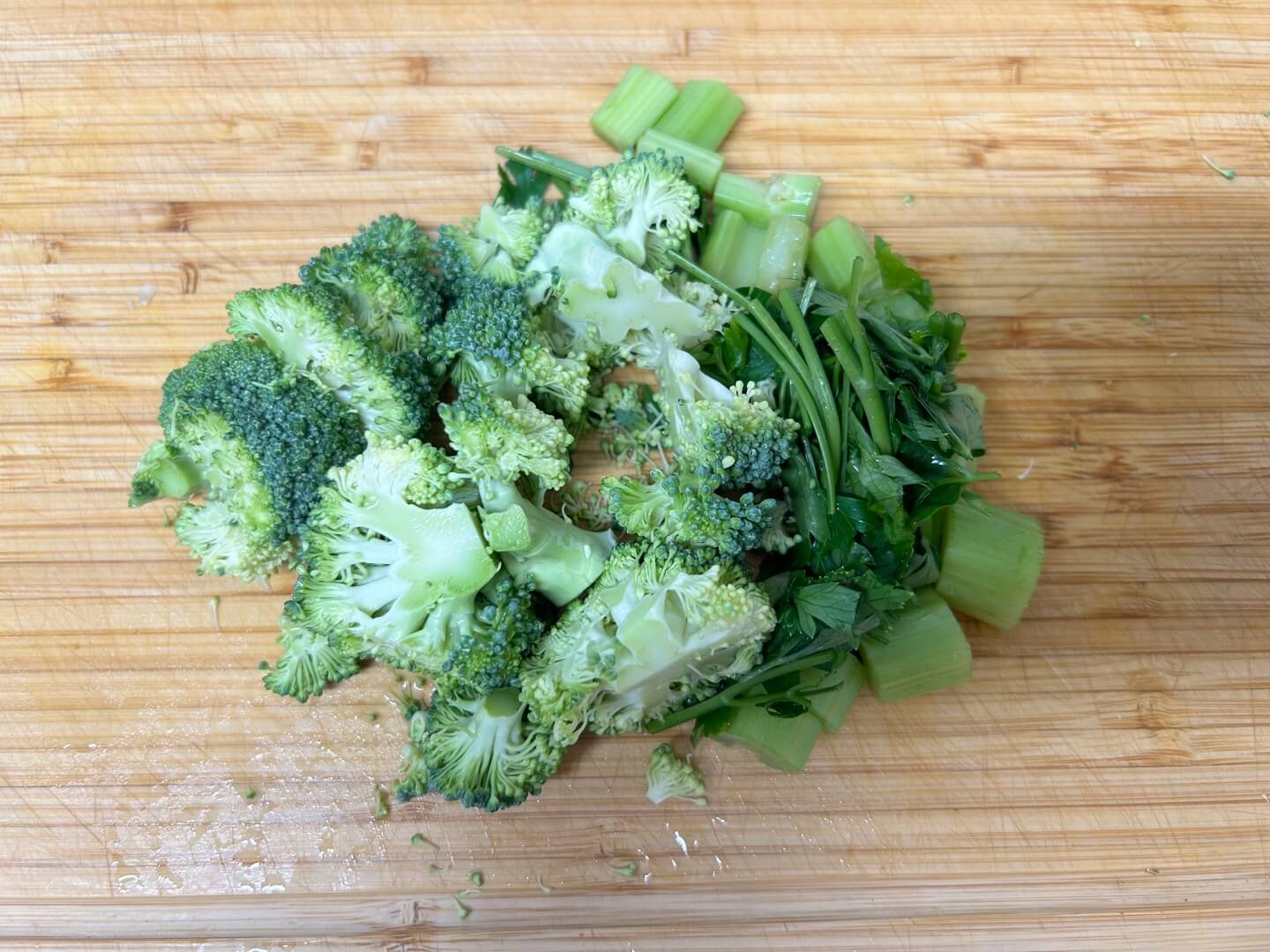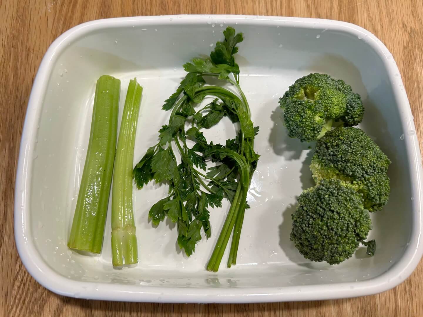 2. 미리 준비한 브로콜리와 씻어 놓은 셀러리, 파슬리를 준비합니다.