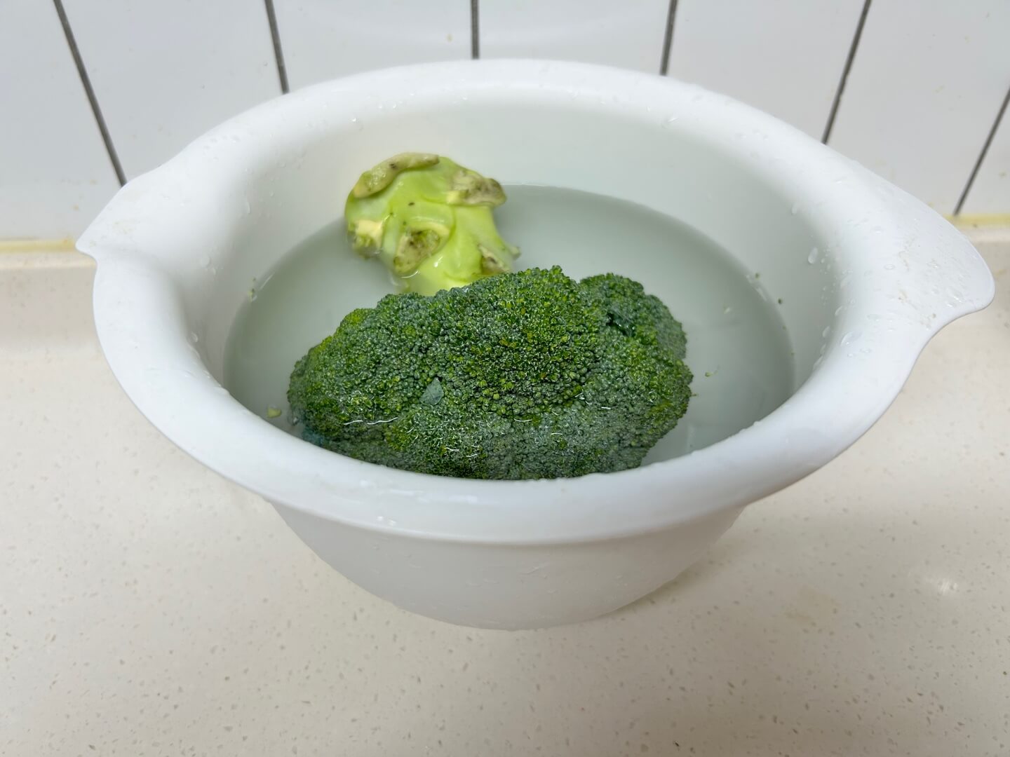 1. 브로콜리는 거꾸로 뒤집어서 물에 담궈 놓은 후 일부만 잘라 놓습니다.(브로콜리를 삶아서 섭취하셔도 좋습니다.)